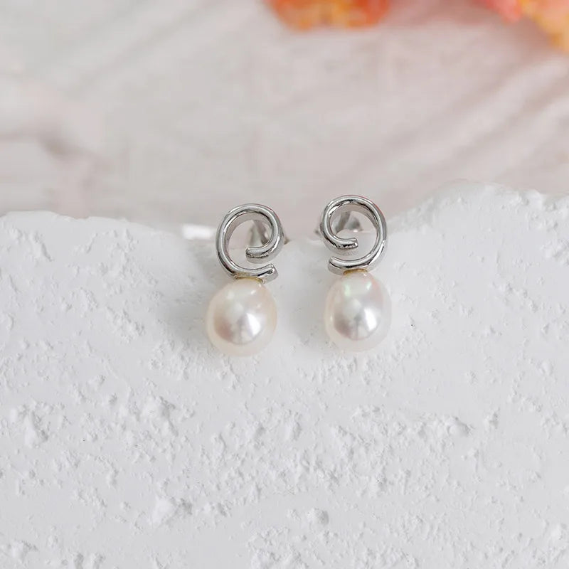 Classic Design Hypoallergenic 925 sterling silver Stud Genuine Freshwater Pearl Rhodium-Plated Earrings simple jewelry