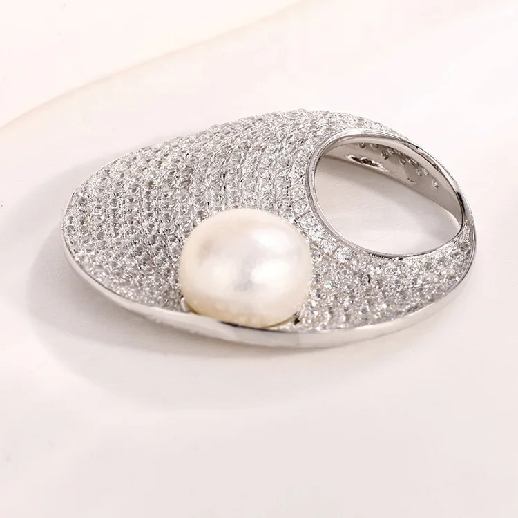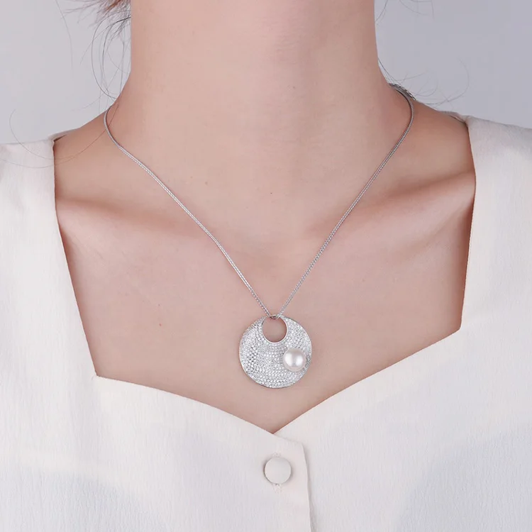 Custom ladies modern jewelry 925 sterling silver freshwater pearl round circle diamond necklace pendant