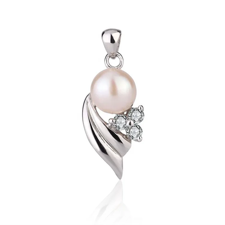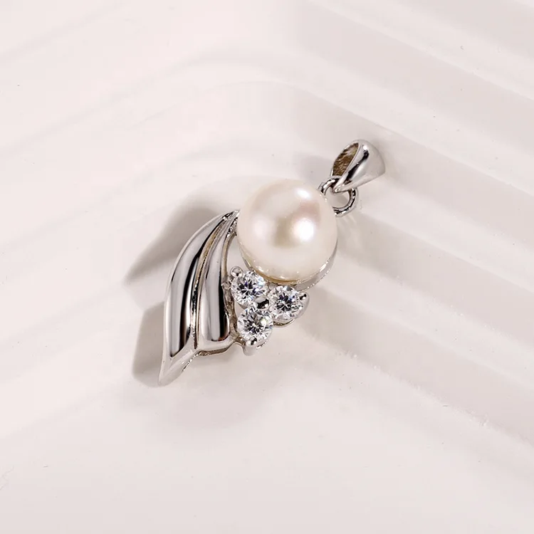 Custom logo fine fashion jewellery modern diamond 925 sterling silver freshwater pearl necklace pendants for pearl setting