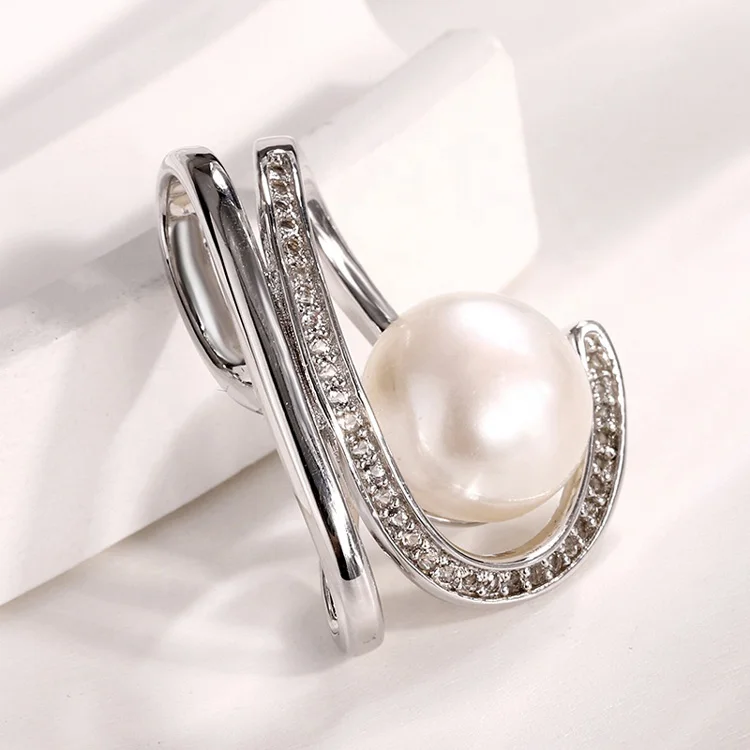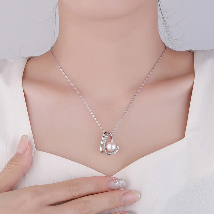 Custom logo modern diamond pendants sterling silver 925 freshwater pearl ladies necklace pendant