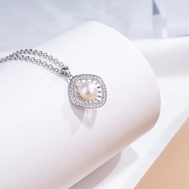 Custom logo moissanite geometric 925 sterling silver necklace pearl pendant for pearl setting