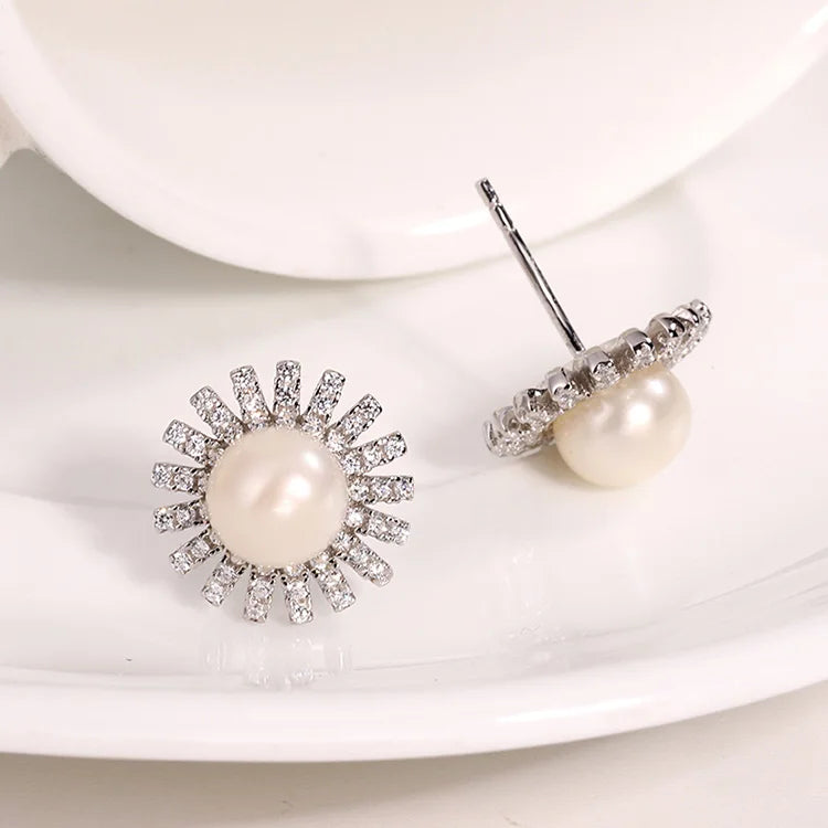 Custom logo oem silver 925 luxury jewelry funky cool natural pearl trending stud earrings for women