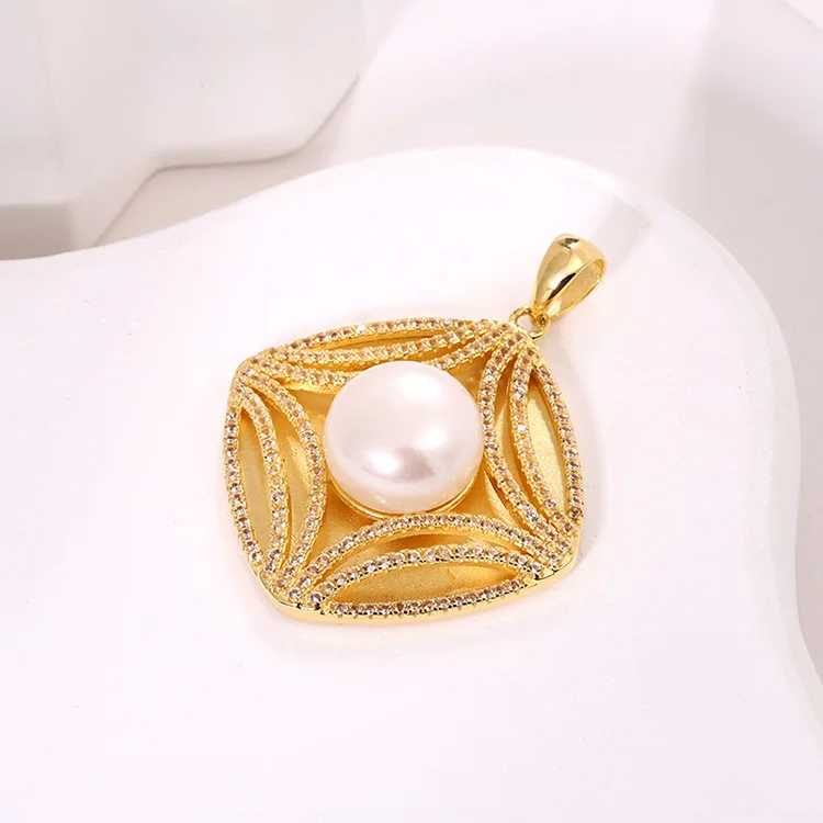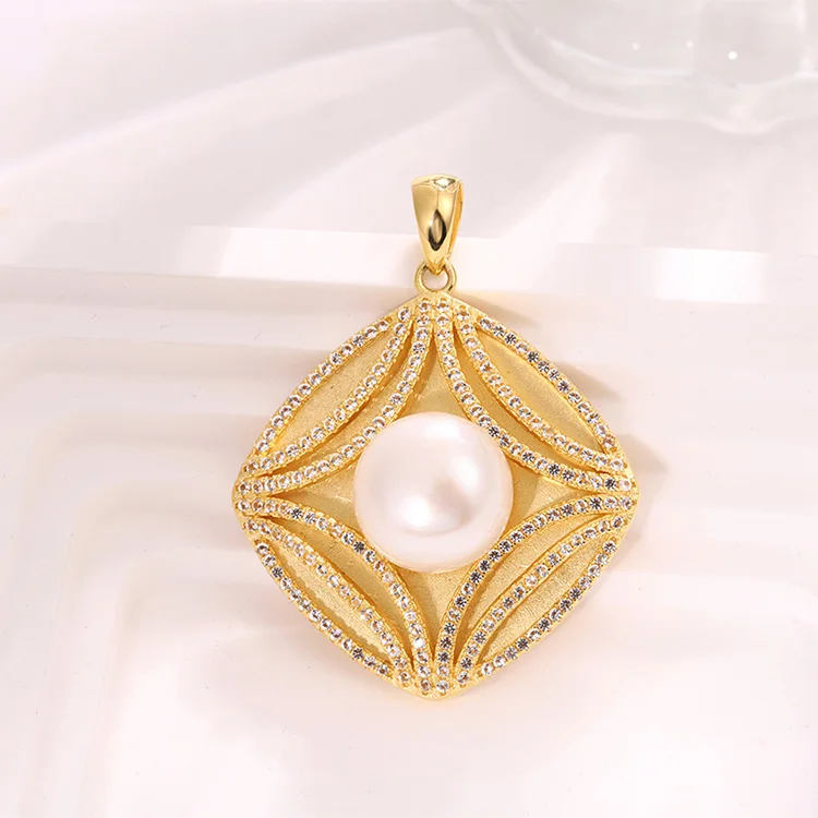 Fine jewelry custom mossanite pearl gold plated pendant charms necklace