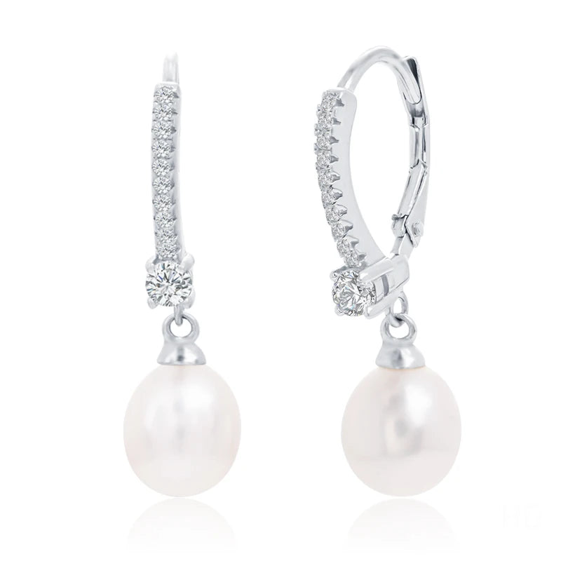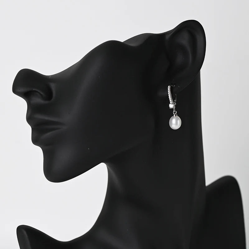 Increase quantity for High-end S925 Sterling Silver Freshwater Pearl Earrings Cz Cubic Zirconia Drop Earings Fashion Women Jewelry
