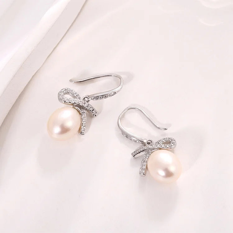 Irregular 925 sterling silver freshwater cultured pearl crochet fish hook earrings with cz diamond setting