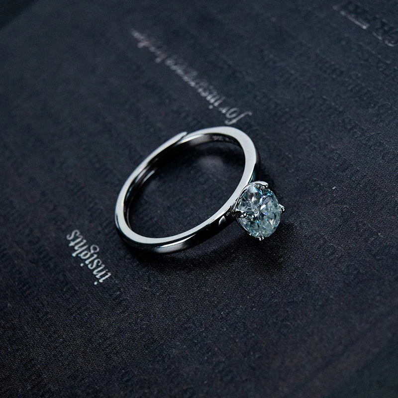 1CT Oval Emerald Cut Moissanite Diamond Ring Trendy 4 Claws Setting Sterling Silver 925 Ring for Wedding Party Anniversary