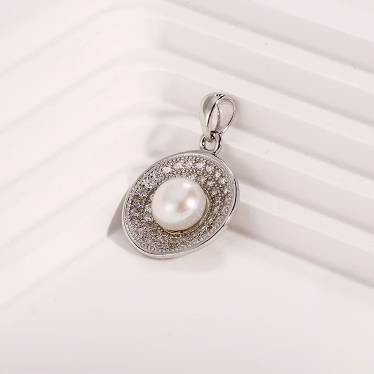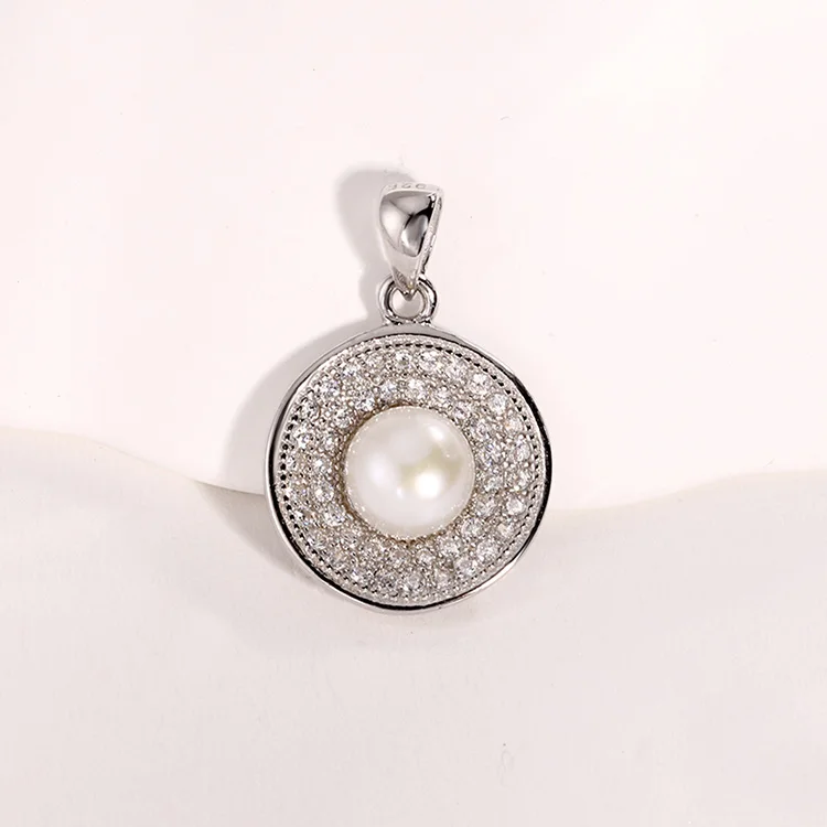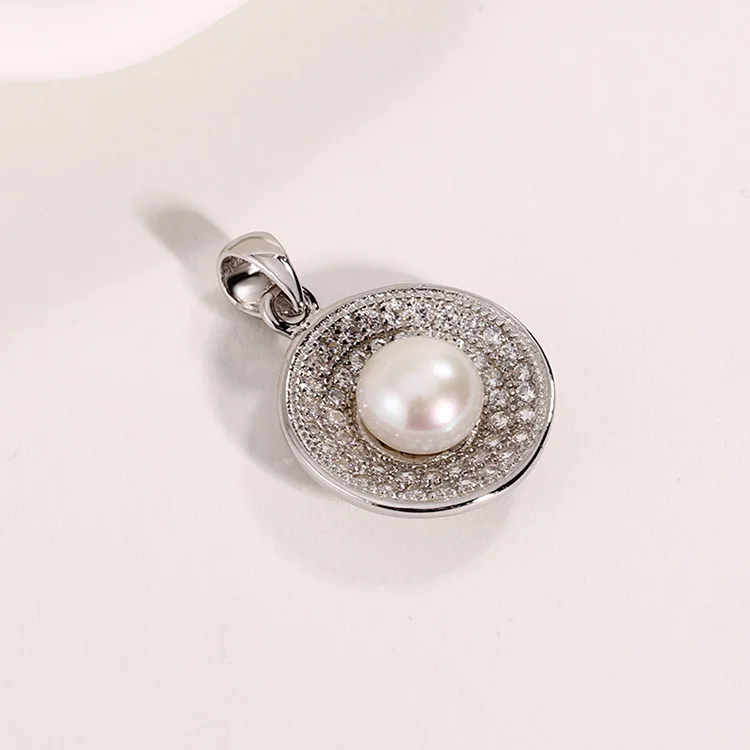 Round circle sterling silver single freshwater pearl pendant for girlfriend