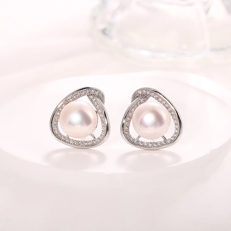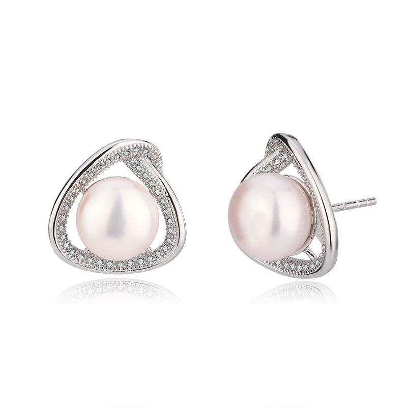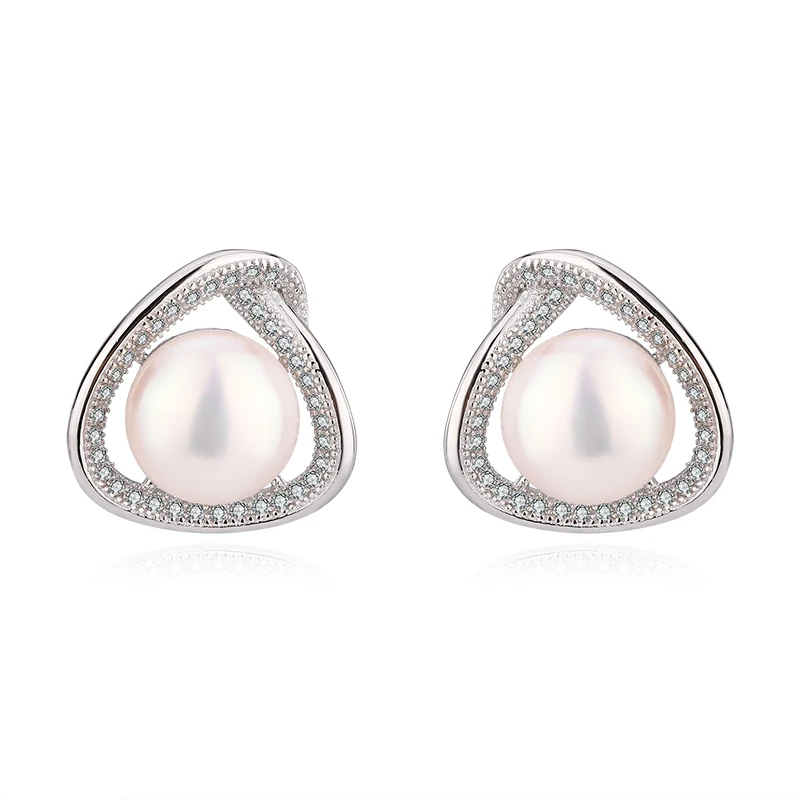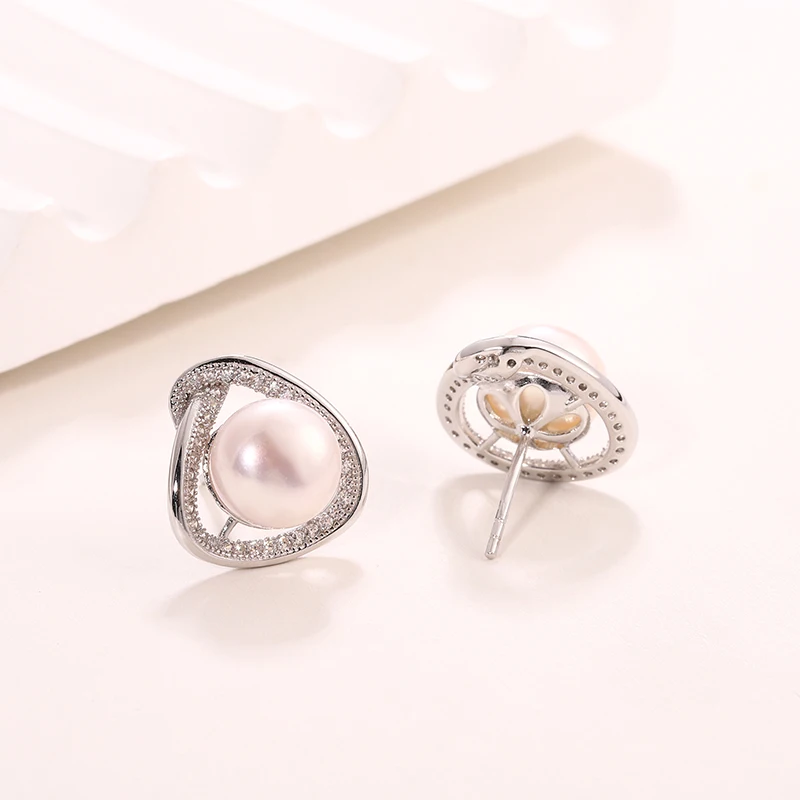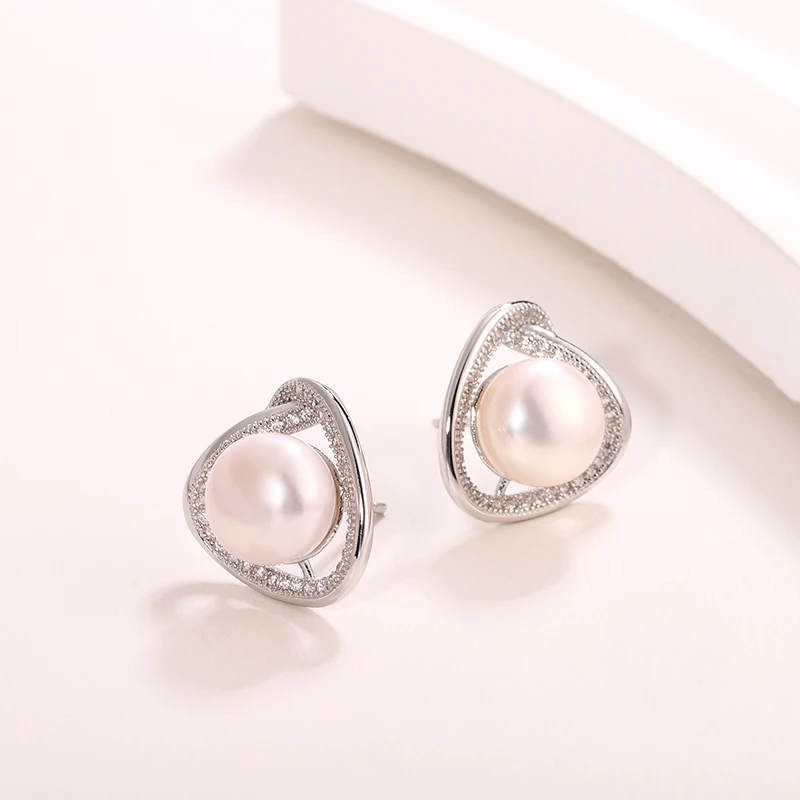 Wholesale Customized 925 Sterling Silver Rhodium Plated natural genuine freshwater pearl stud earring for Wedding Party Gift