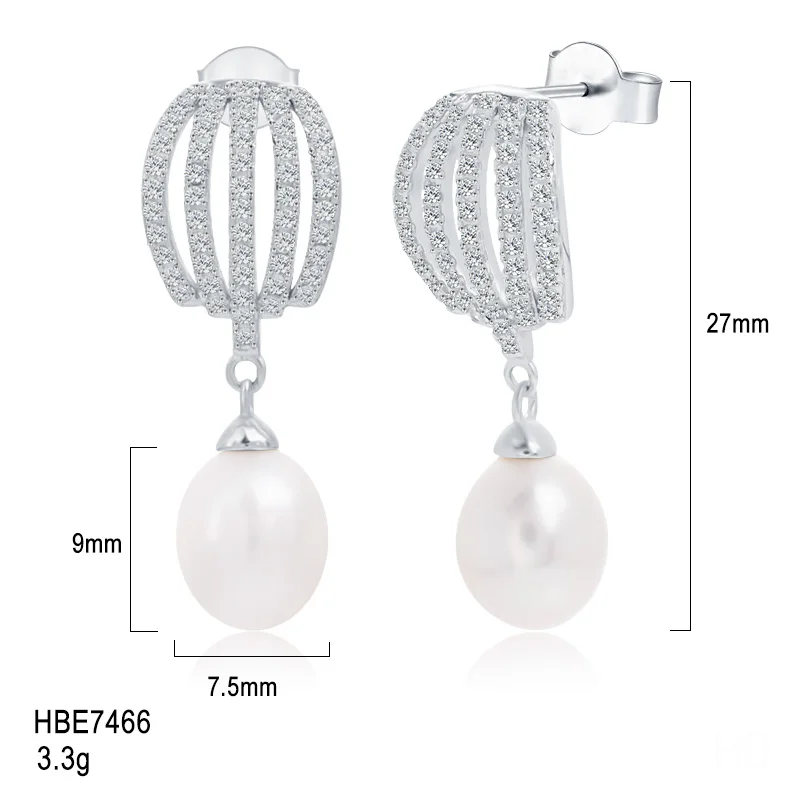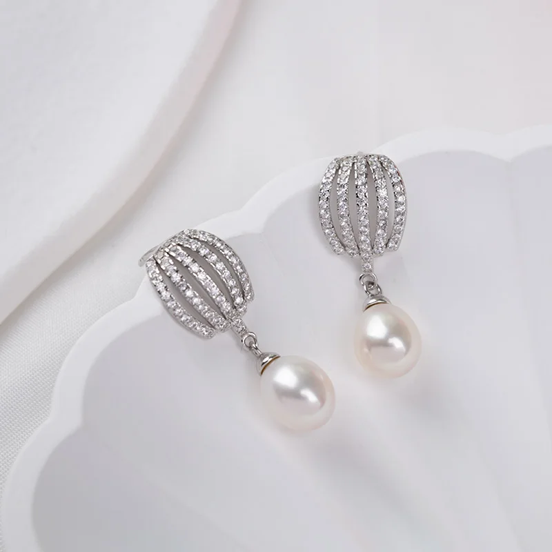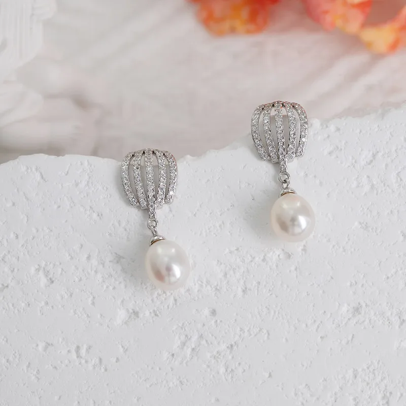 Wholesale New Products waterproof rhodium plated freshwater pearl 925 silver zircon earrings for women