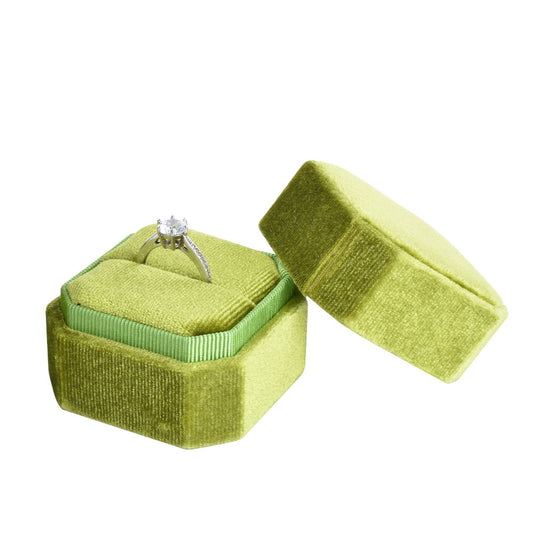 Green Hexagon Ring Velvet Box