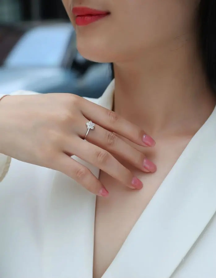 Increase quantity for 0.53Ct Moissanite Ring, 18K White Gold Plated, Women's S925 Silver Engagement Wedding Jewelry, Five Leaves Design