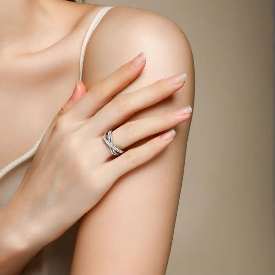 Decrease quantity for 0.76ctw D Color Moissanite Wedding Band for Women, 925 Sterling Silver, Round & Square Stones, Twisted Design
