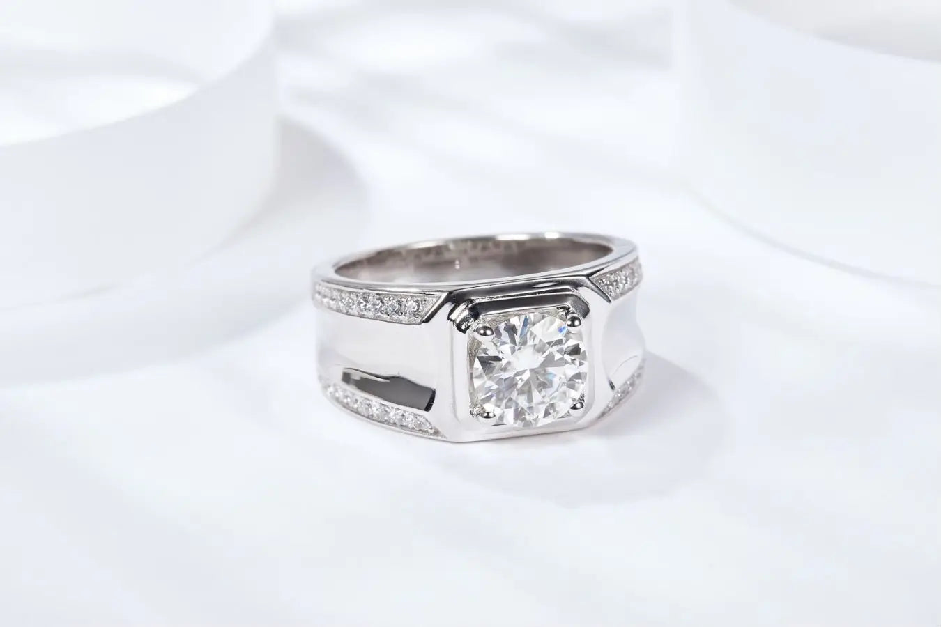 1/2 Carat Men's Moissanite Wedding Ring, 925 Sterling Silver, 1 Carat D Color VVS1 Clarity, Round Brilliant Cut Promise Ring