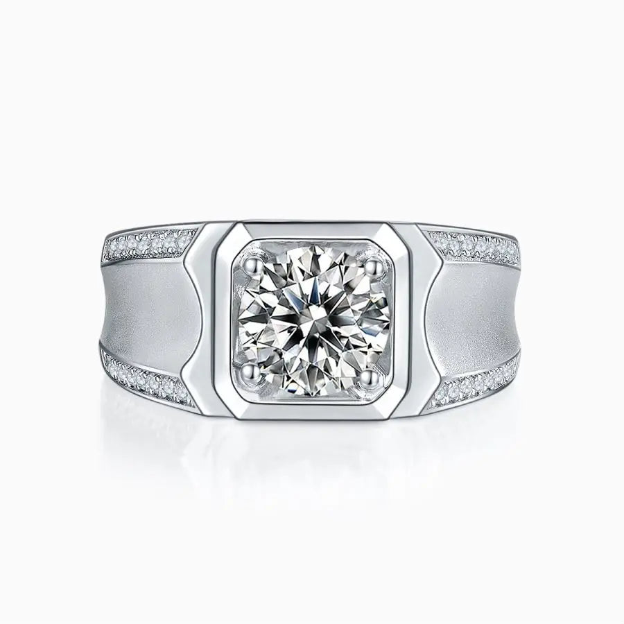 3 Carat Round Moissanite Ring, Stylish S925 Silver Ring, Men's Wedding/Promise Ring, Anniversary/Birthday Gift
