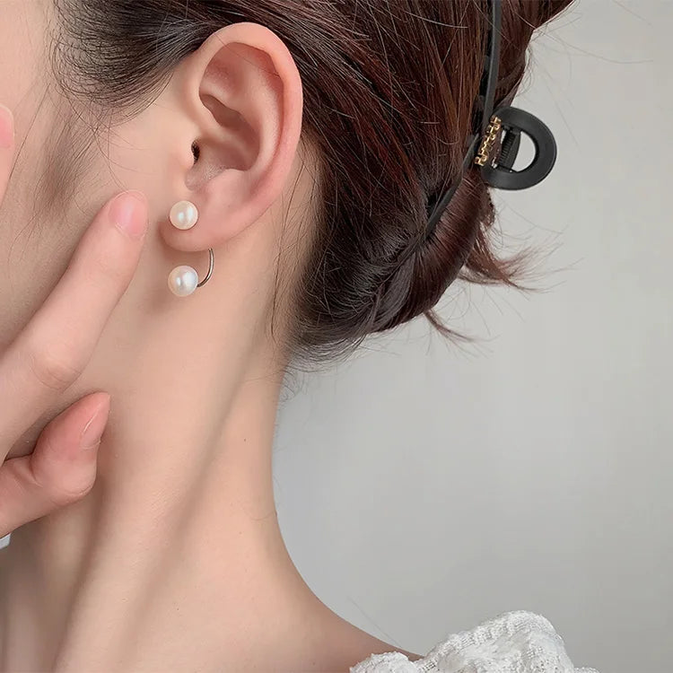 6.5mm 7mm double pearl simple 925 sterling silver freshwater cultured pearl dangle drop earrings