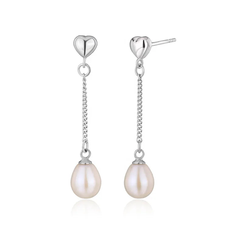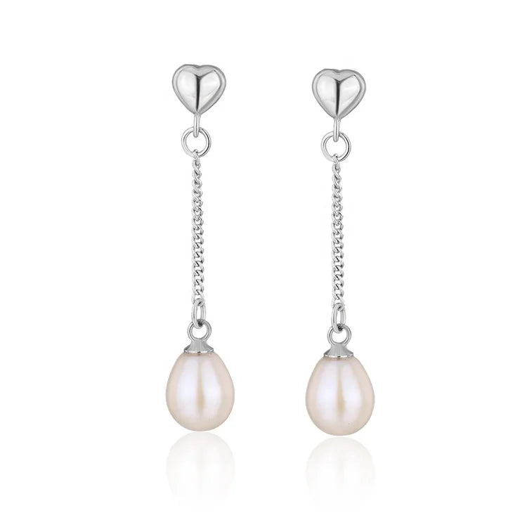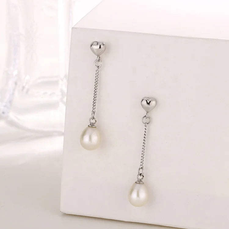 925 sterling silver long dangle drop design natural pearl earrings for women