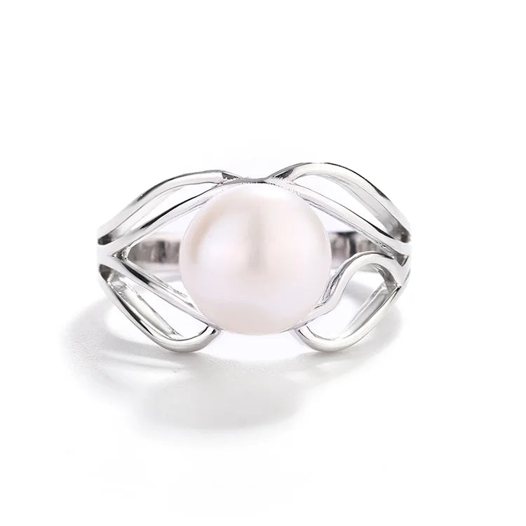 Best price personalized custom unique dainty 925 silver big freshwater pearl ring with white pearl