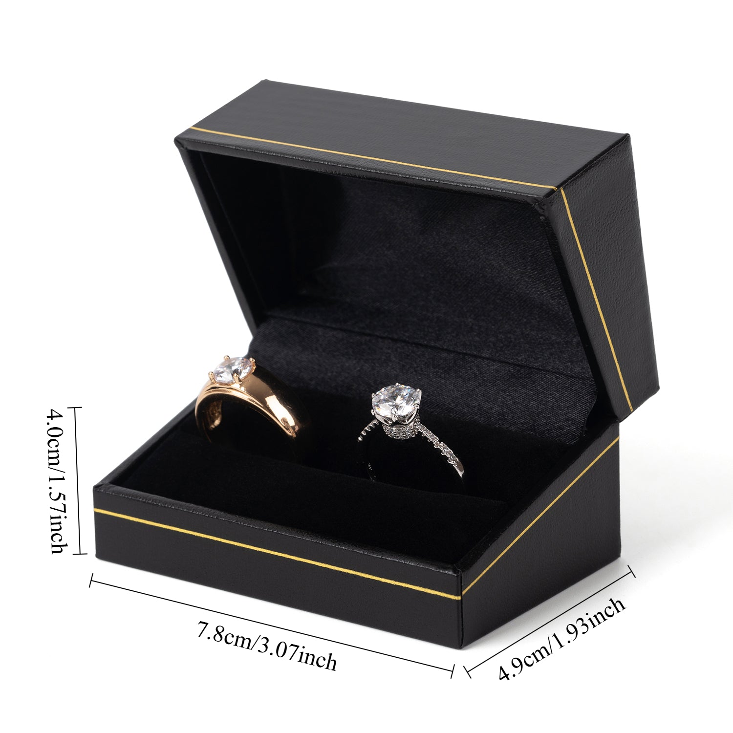 12PCS (LR5-BK) Black Double Ring Box With Gold Trim
