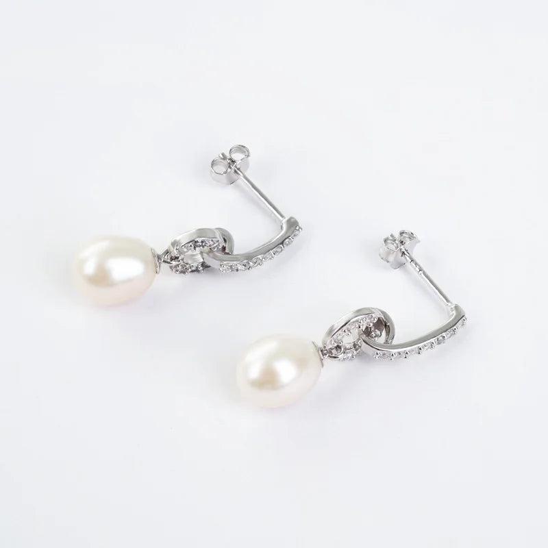 Bulk wholesale fashion statement cubic zirconia 925 sterling silver pearl dangle earrings
