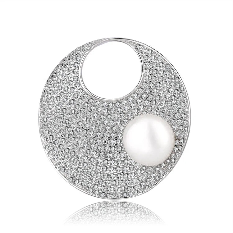 Custom ladies modern jewelry 925 sterling silver freshwater pearl round circle diamond necklace pendant