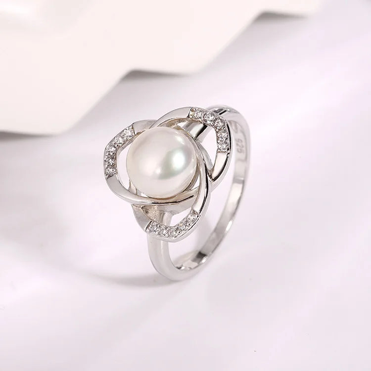 Custom logo zircon diamond-set intertwined 925 sterling silver pearl ring jewelry