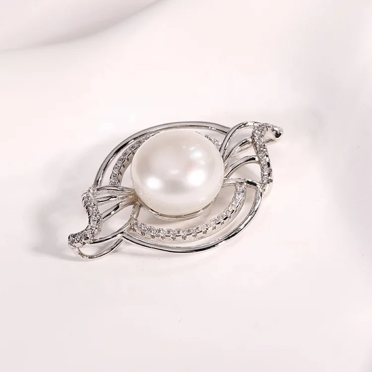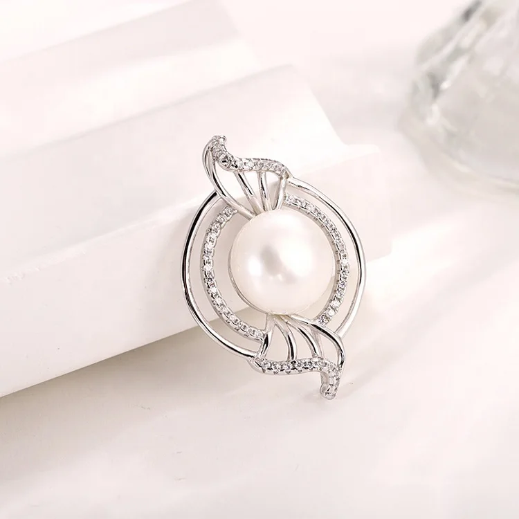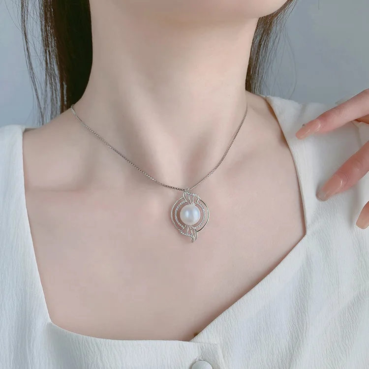 Custom made jewelry 925 sterling silver diamond round circle single pearl necklace pendants for chains