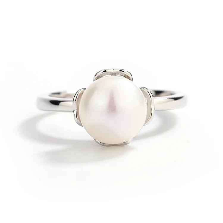 Increase quantity for Elegant minimalist style simple design modern real pearl 925 sterling silver wedding engagement ring for women