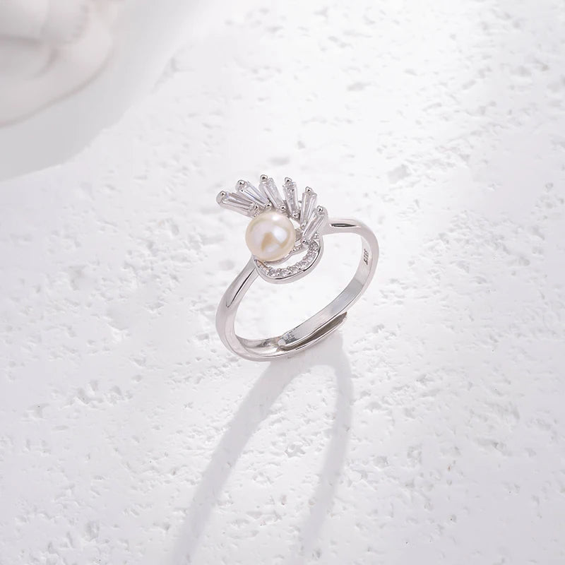 Fashionable 925 silver jewelry set, pearl jewelry, earrings, rings, necklaces, perfect for various occasions such as weddings.