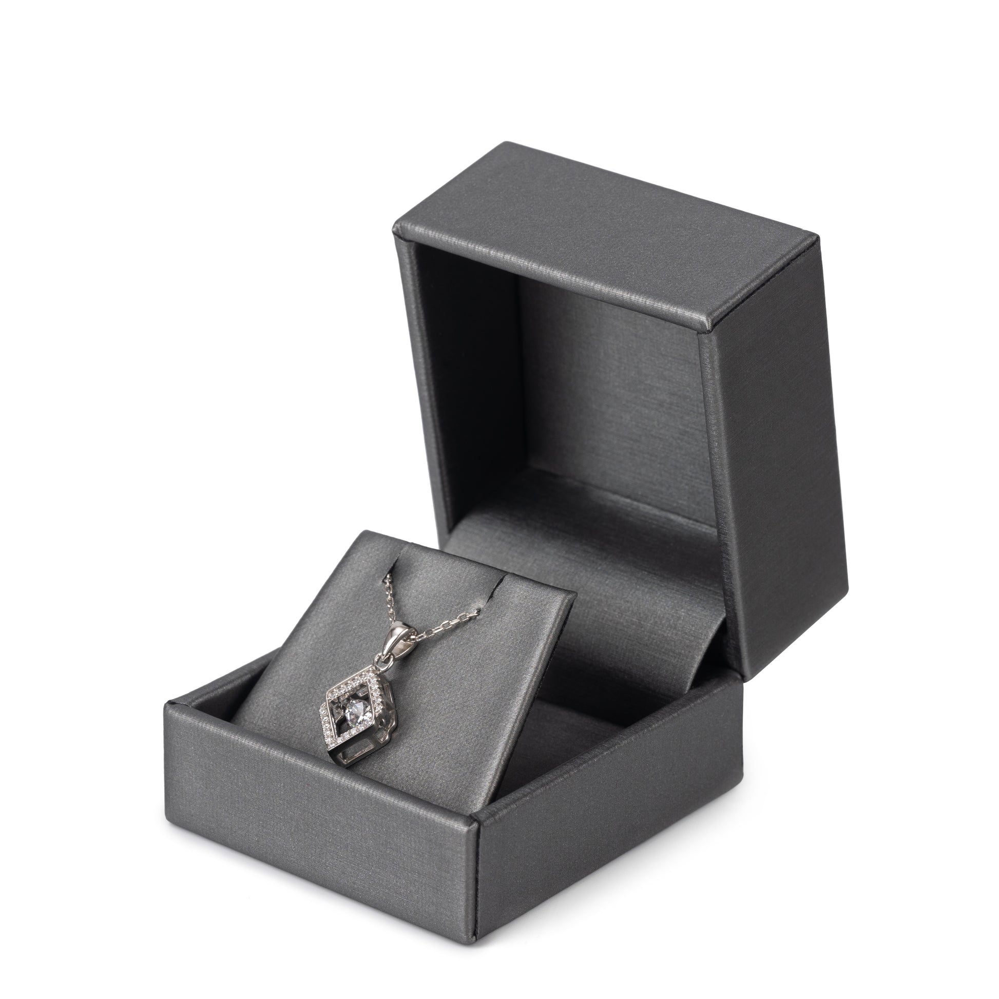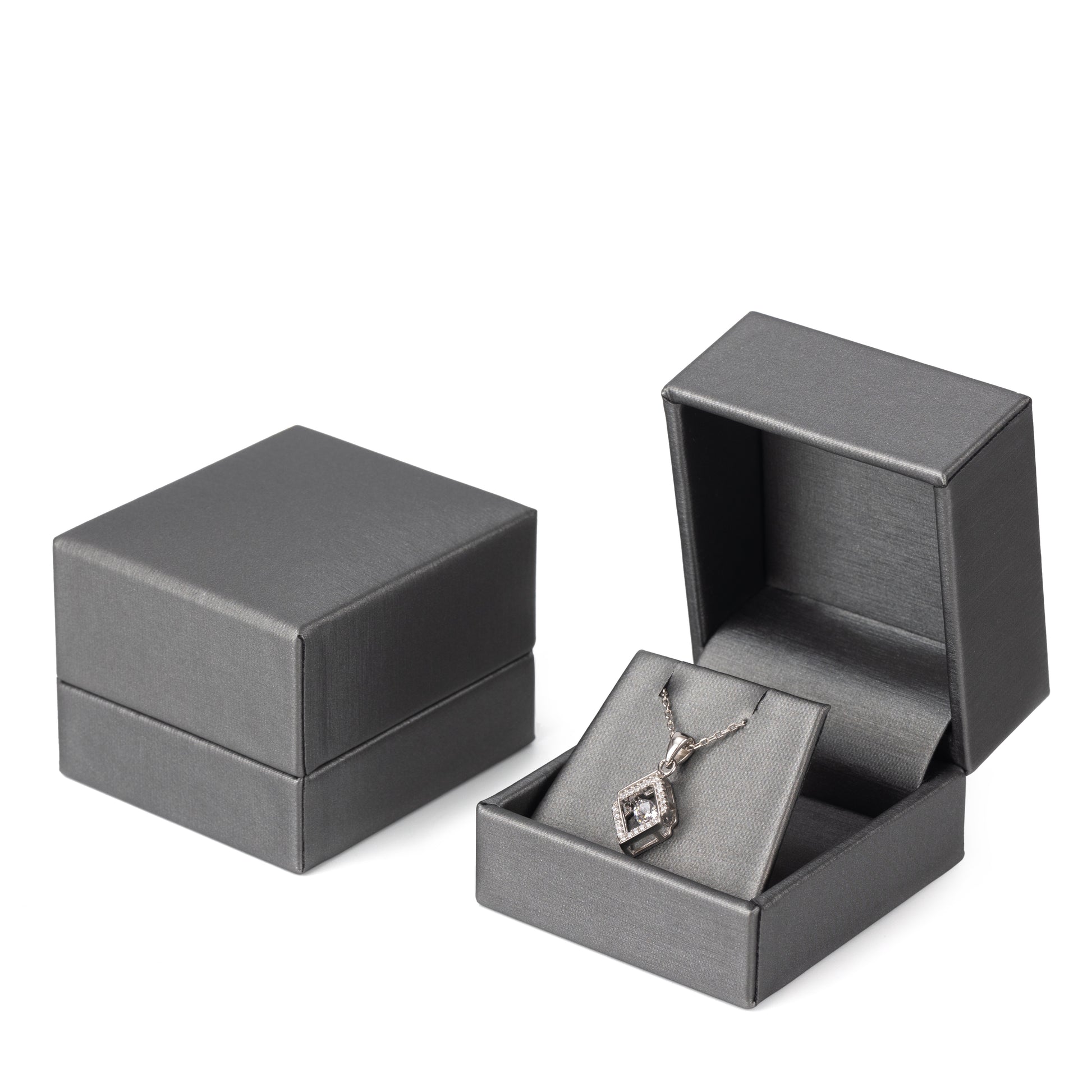 Impress your discerning customers with a luxurious jewelry box made of high-end brushed leather fabric and a plush velvet interior to softly cushion each ring.