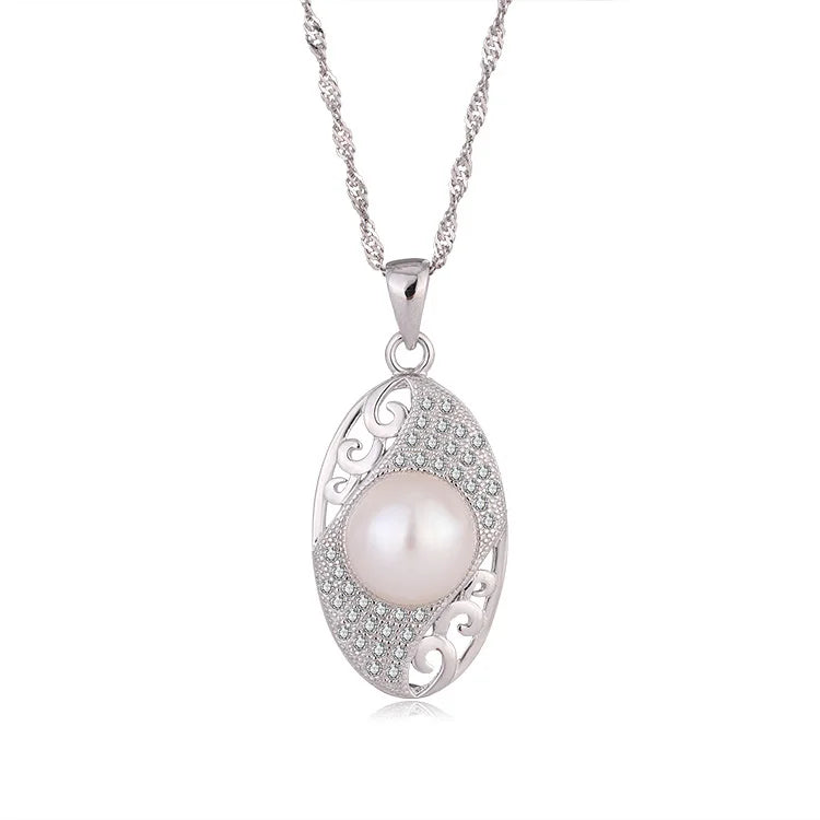 High quality high end 925 sterling silver earrings stud necklace pearl pendant ring set for woman jewelry