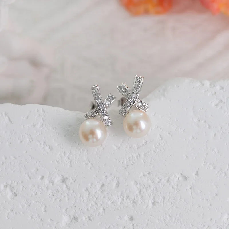 High quality multi cubic zirconia zircon lady woman wedding 925 sterling silver freshwater pearl post stud earrings