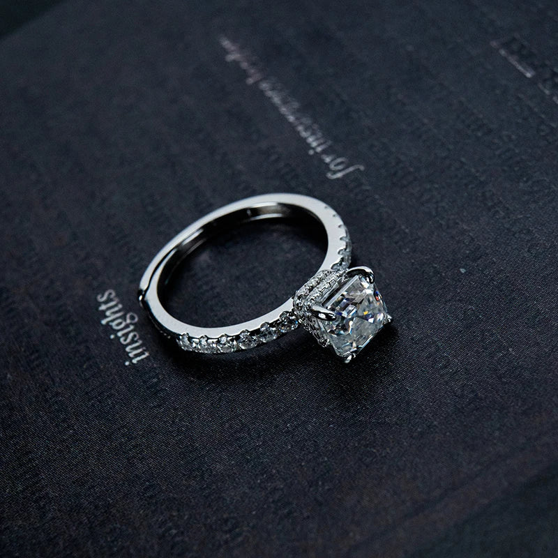 1CT Trendy Asscher Cut Moissanite Diamond Ring 925 Sterling Silver round Ring Resizable wedding Ring