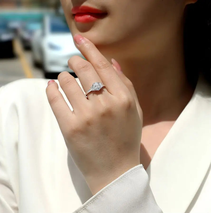 Decrease quantity for JIU ZUAN 3 Stone Moissanite Engagement Ring for Women, 925 Silver, Oval Cut, D Color, GRA Certified