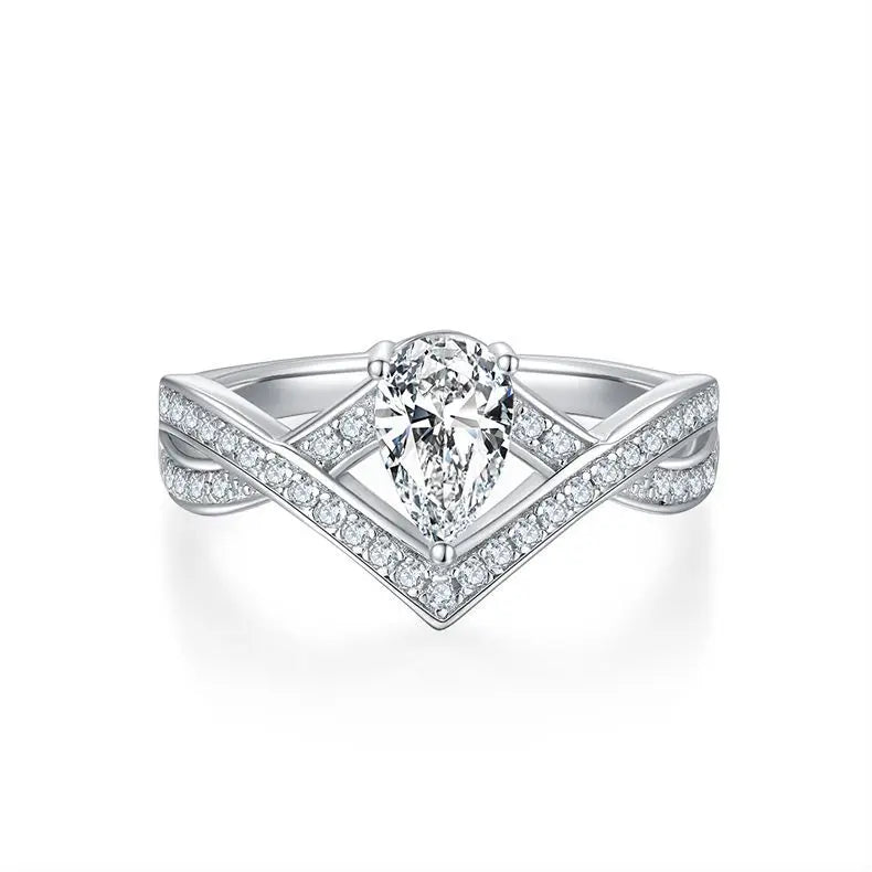 Increase quantity for Luxurious Pear-Shaped Moissanite Ring, 5x8mm, S925 Silver with Platinum Plating, Perfect for Daily, Parties, & Gifts