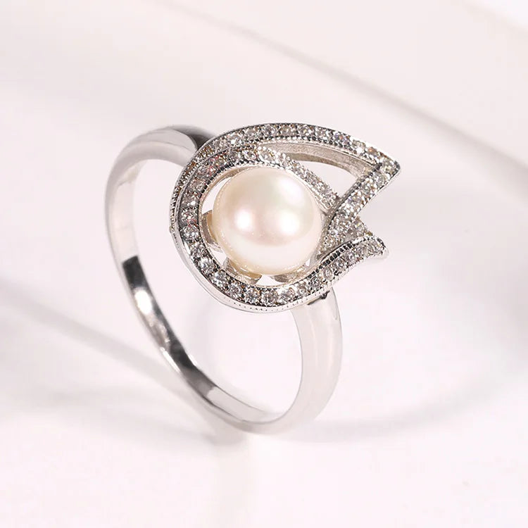Luxury fashion jewelry ladies female finger 925 sterling silver casual zircon freshwater pearl ring for women