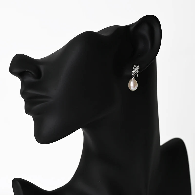 Moissanite stone twisted geometric design 925 sterling silver freshwater pearl dangle drop earrings with stones