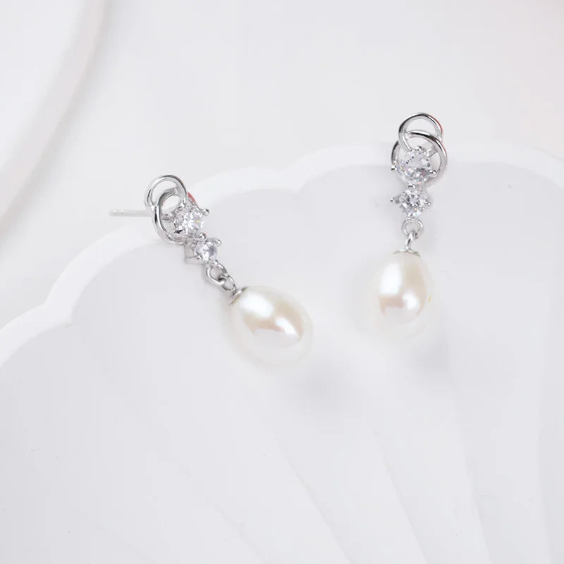 New designs cubic zirconia 925 sterling silver freshwater pearl dangle drop zircon earrings