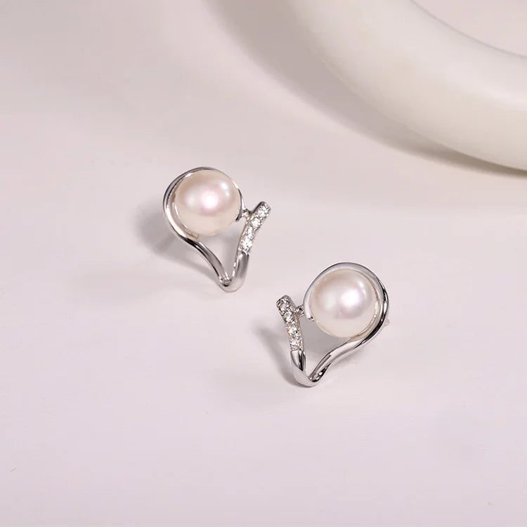 Wholesale bulk trendy women luxury 925 silver diamond statement pearl earrings