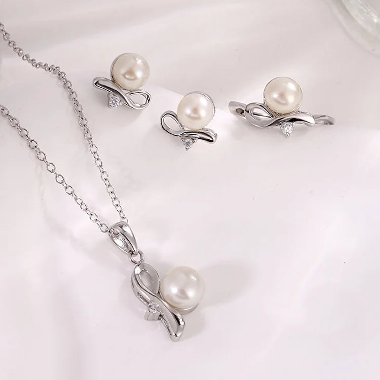 Wholesale ladies fine zirconia jewelry 925 sterling silver fresh water pearl earring pendant necklace set