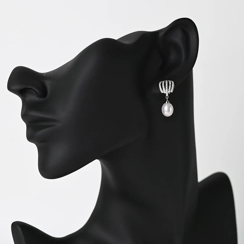 Wholesale New Products waterproof rhodium plated freshwater pearl 925 silver zircon earrings for women