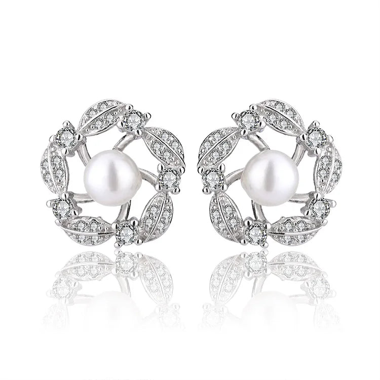Wholesale woman fashion chain 925 sterling silver minimalist necklace and pearl pendant stud earrings jewelry set