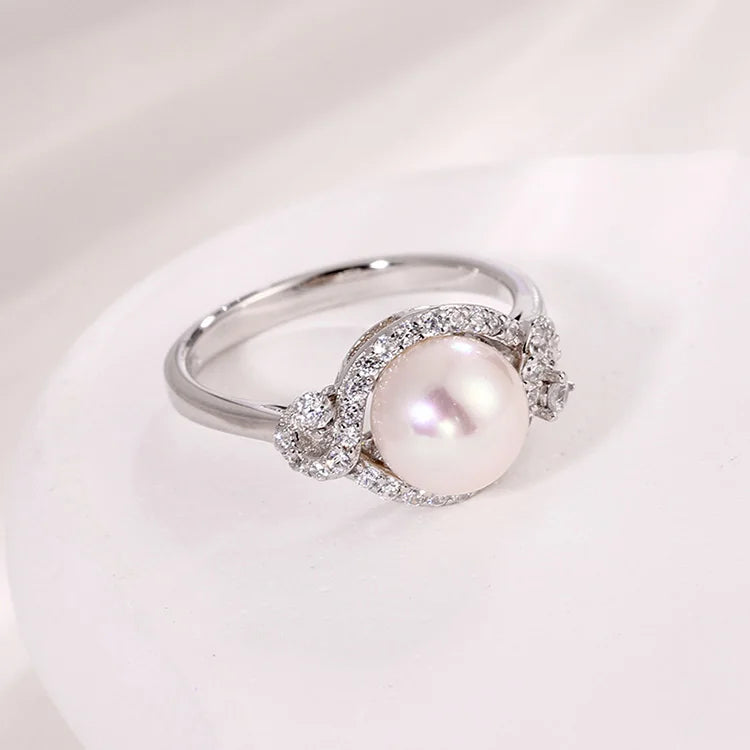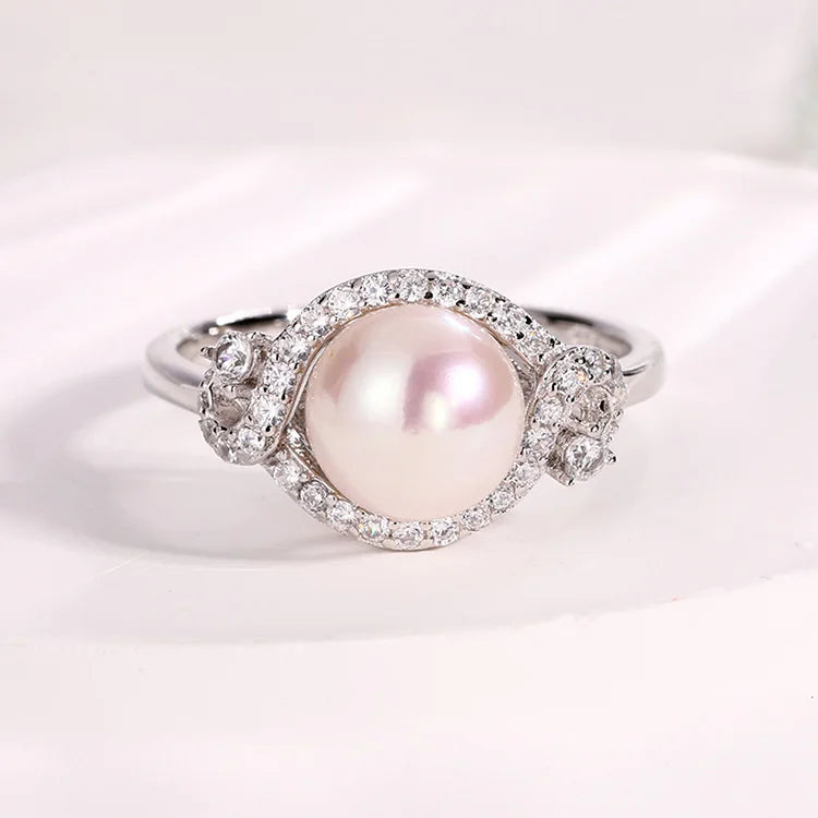 Women white pearl and diamond 925 sterling silver ring engagement wedding ring for female